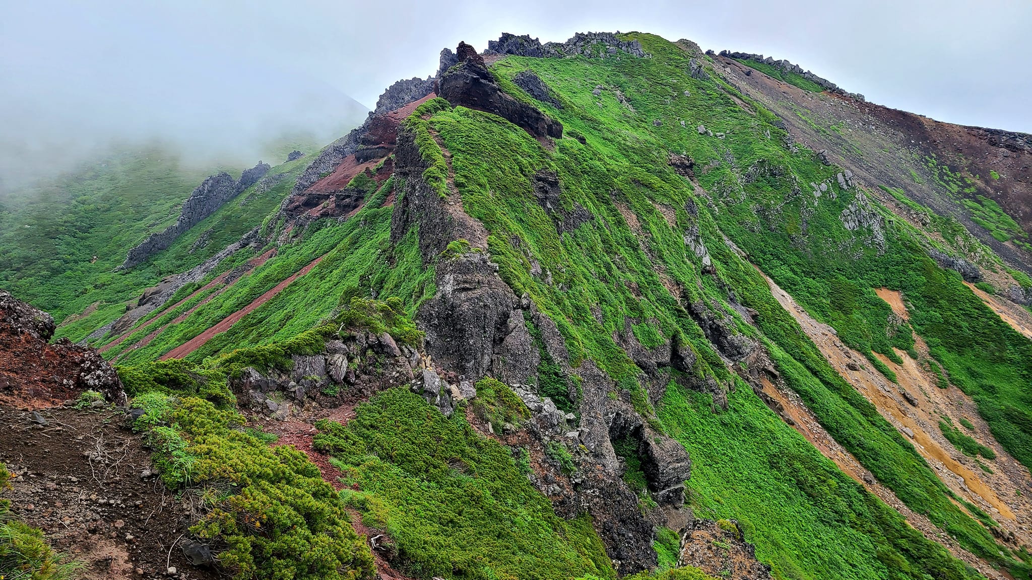 I’m guiding a small group of up to 9 members (7 slots open at this time) from 8am on Thursday, August 24th. I’ll pick everyone up at Morioka Station at 8am and we’ll stop at a convenience store for food and such before starting at the Nanataki Trailhead in Hachimantai. This is one of the longer trails up Mt. Iwate, and will be about 10km to the summit and then 8th Station lodge where we’ll spend the night with an elevation gain of around 1500 meters. We’ll pass multiple waterfalls, an active volcanic area with sulfur vents and some fairly steep slopes before climbing up to a beautiful ridge walk along Onigajo, the Demon’s Castle.